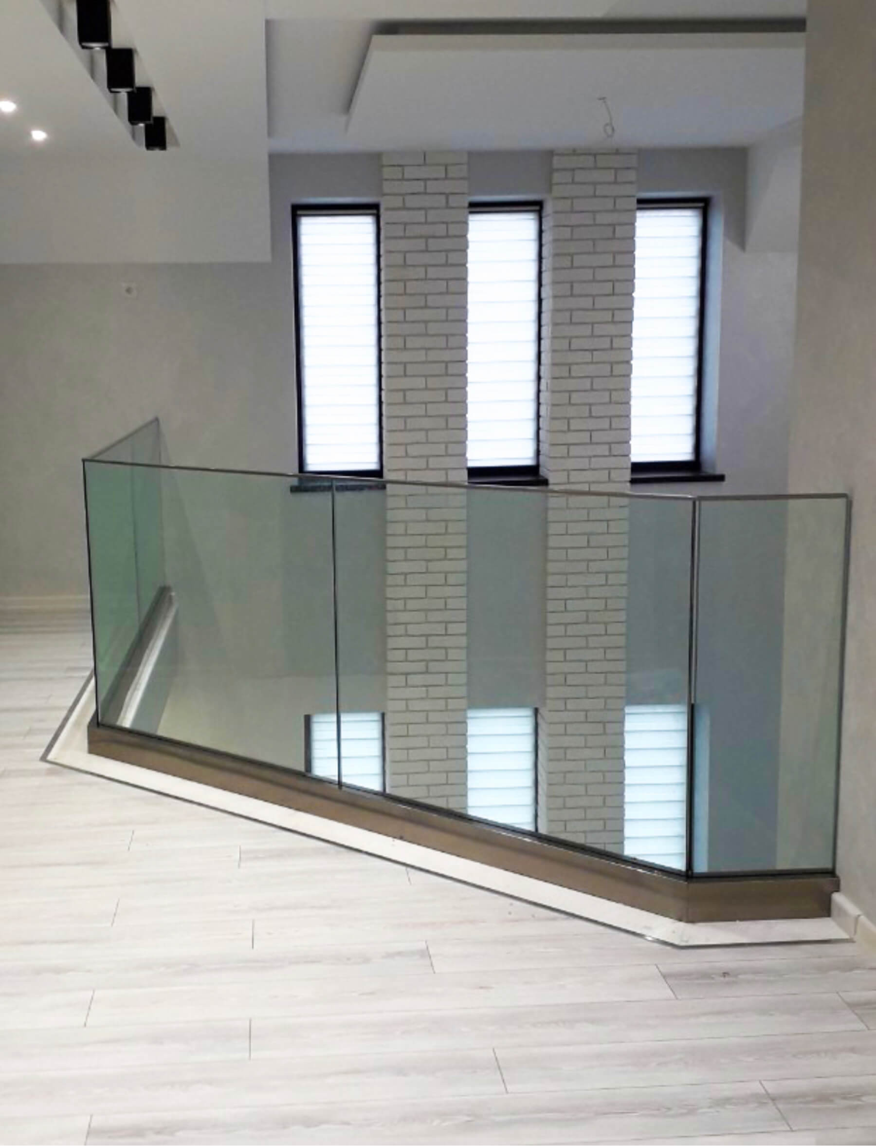 Minimalismul în ceea ce privește elementele de fixare atrage atenția asupra sticlei și altor elemente de decor din interior. Într-un design minimalist, cu nuanțe predominante de negru sau gri, balustrada din sticlă în aceste culori devine punctul central al interiorului casei tale.