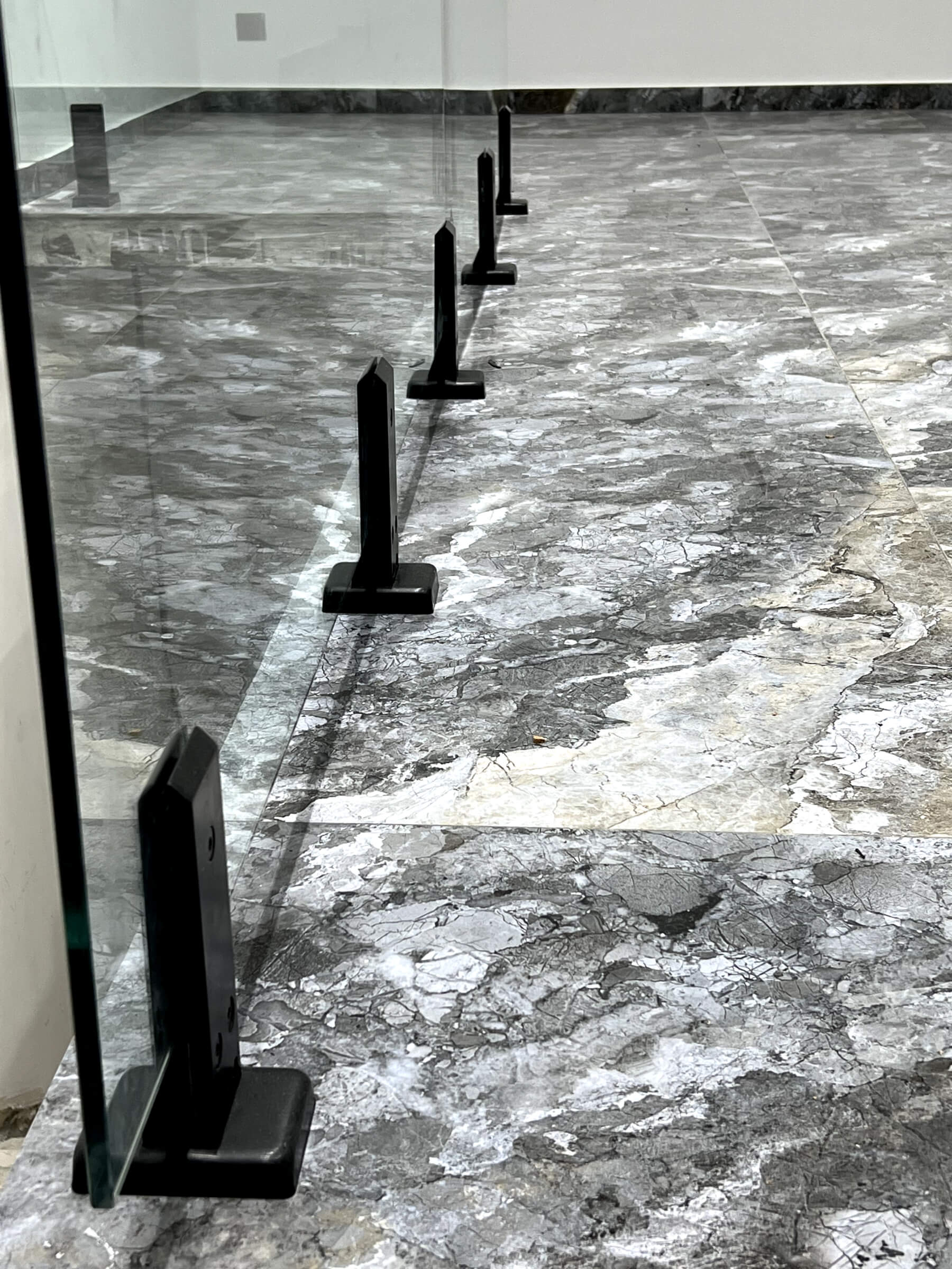 Balustrada din sticlă securizată, fixată pe piciorușe, este o alegere excelentă pentru casele particulare și poate fi folosită și pentru balconul de la parter. Această metodă de fixare este ca o prindere punctată, dar se montează pe podea și ridică balustrada la o înălțime potrivită.