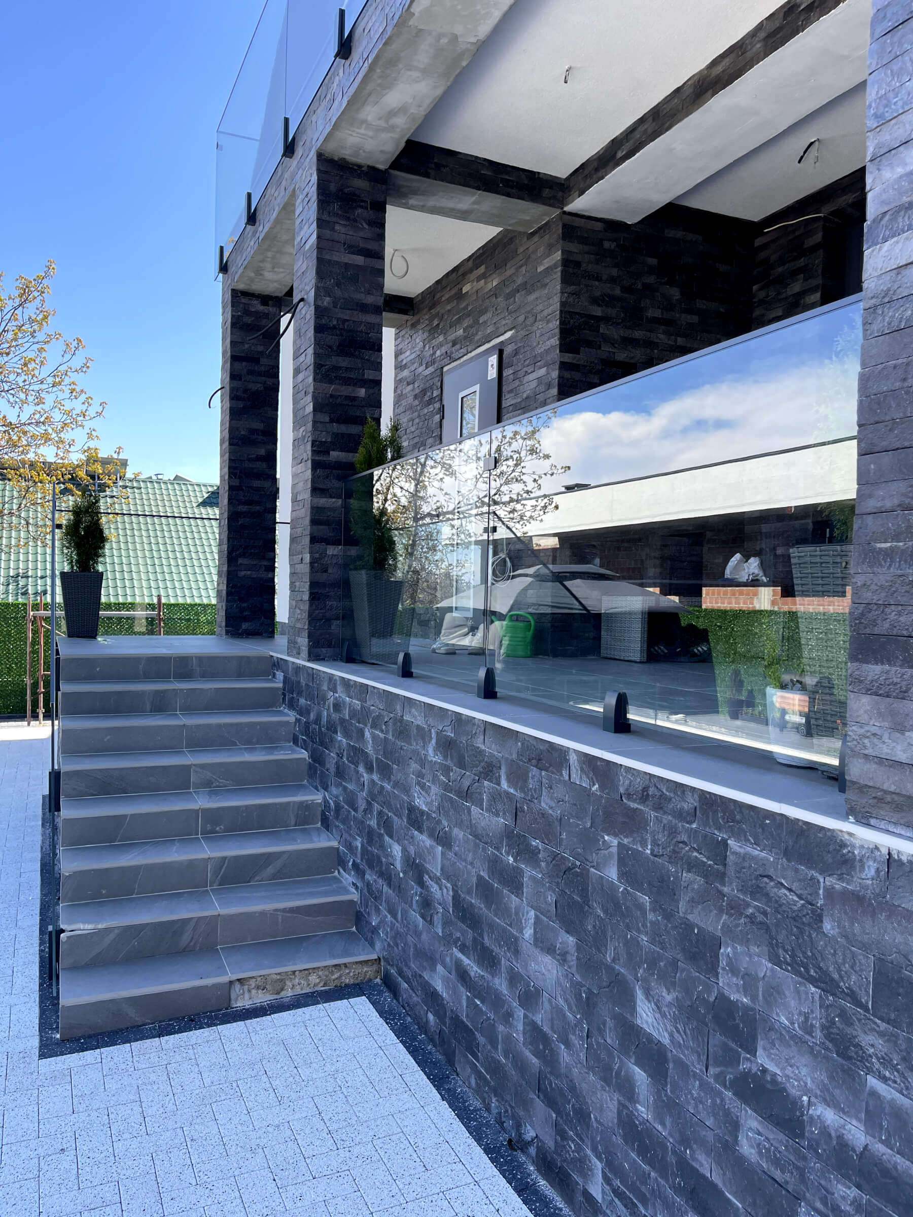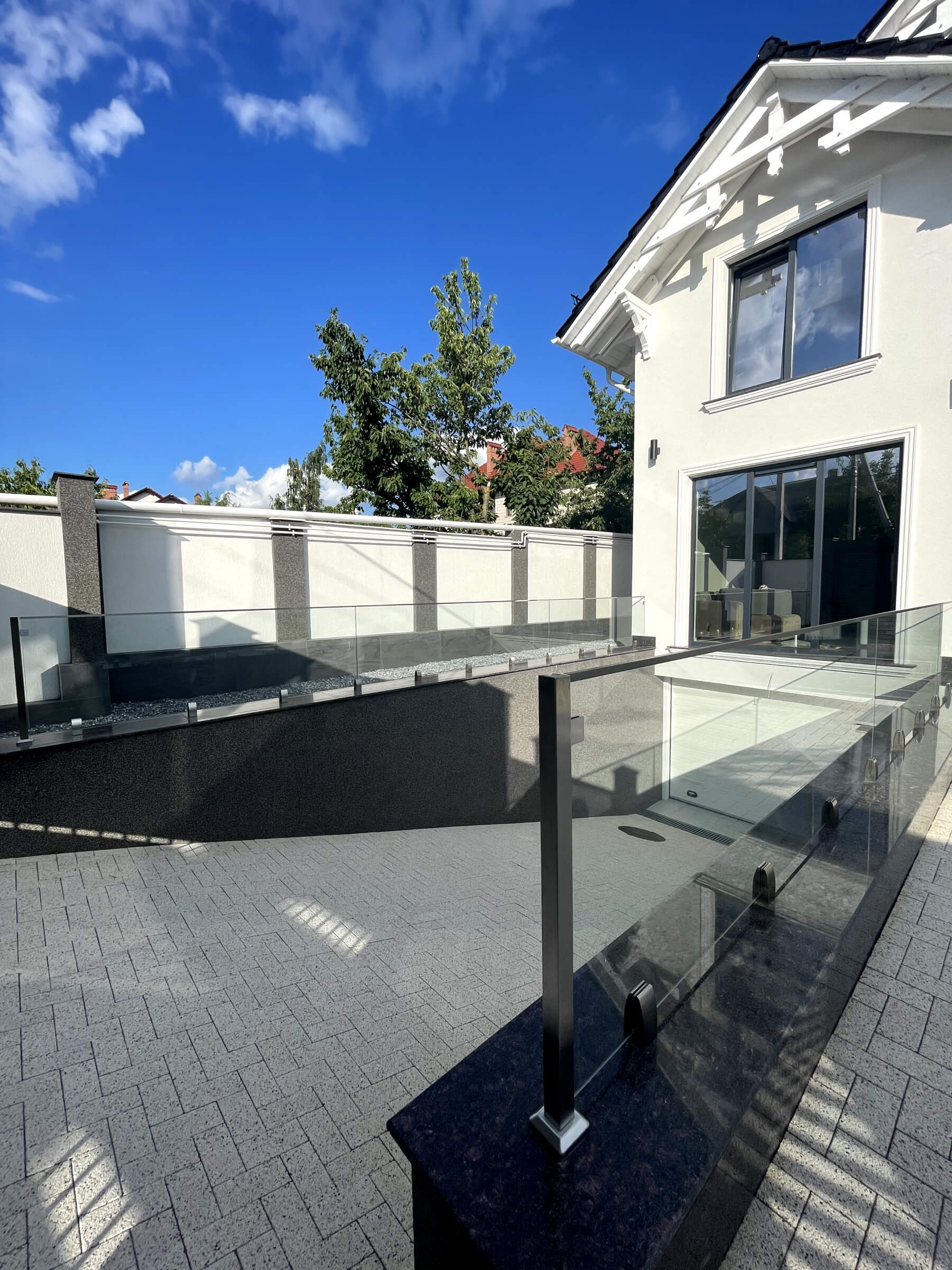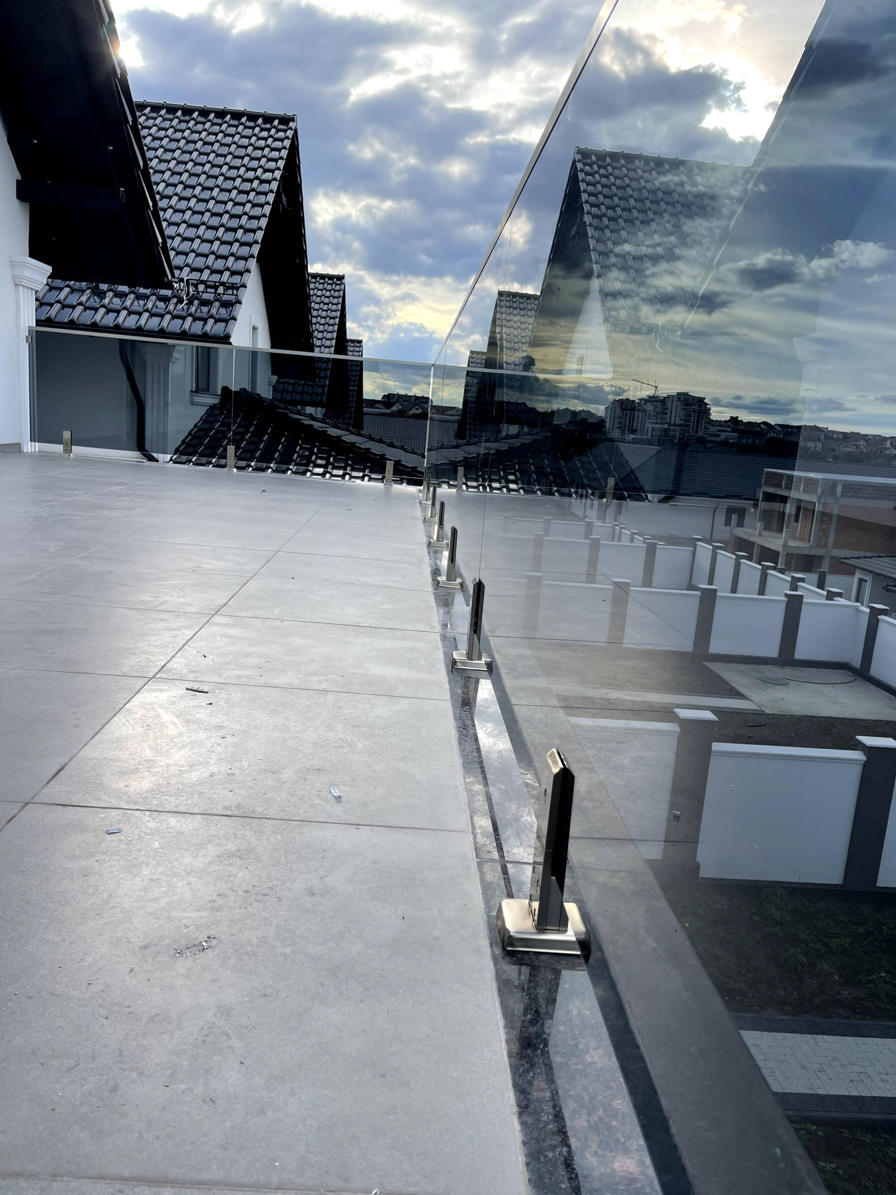 Fixarea pe piciorușe oferă un aspect impresionant și elegant, similar balustradelor din sticlă cu prindere punctată. Piesele de fixare pot fi alese în forme diferite, cum ar fi cilindrice sau rectangulare. În funcție de preferințe, componentele de feronerie pot fi vopsite în orice culoare din paleta RAL. Fie că alegeți sticlă transparentă, sablată, bronz sau gri, veți obține un aspect elegant și modern. Balustrada din sticlă nu este doar decorativă, ci și esențială pentru siguranță.