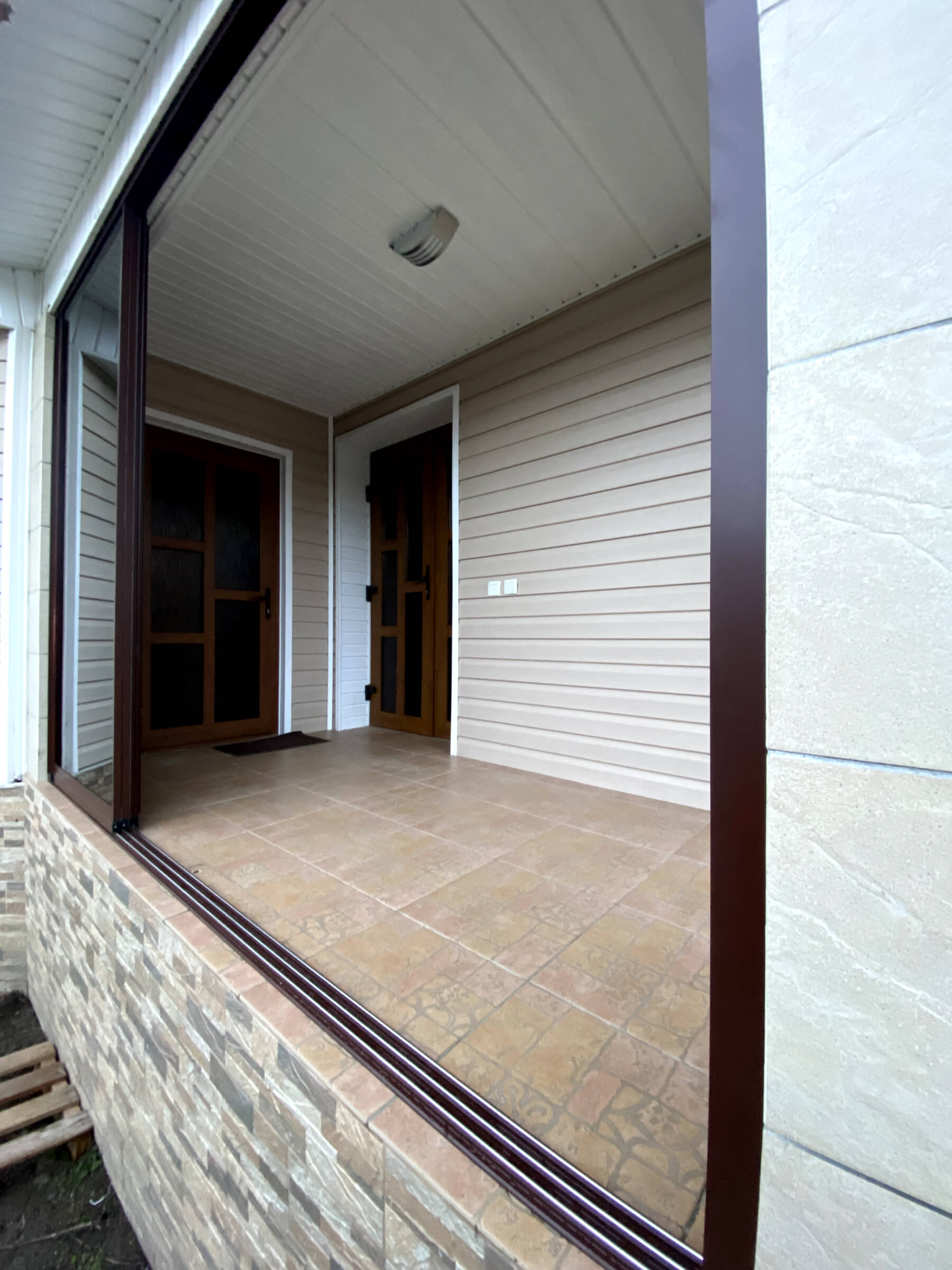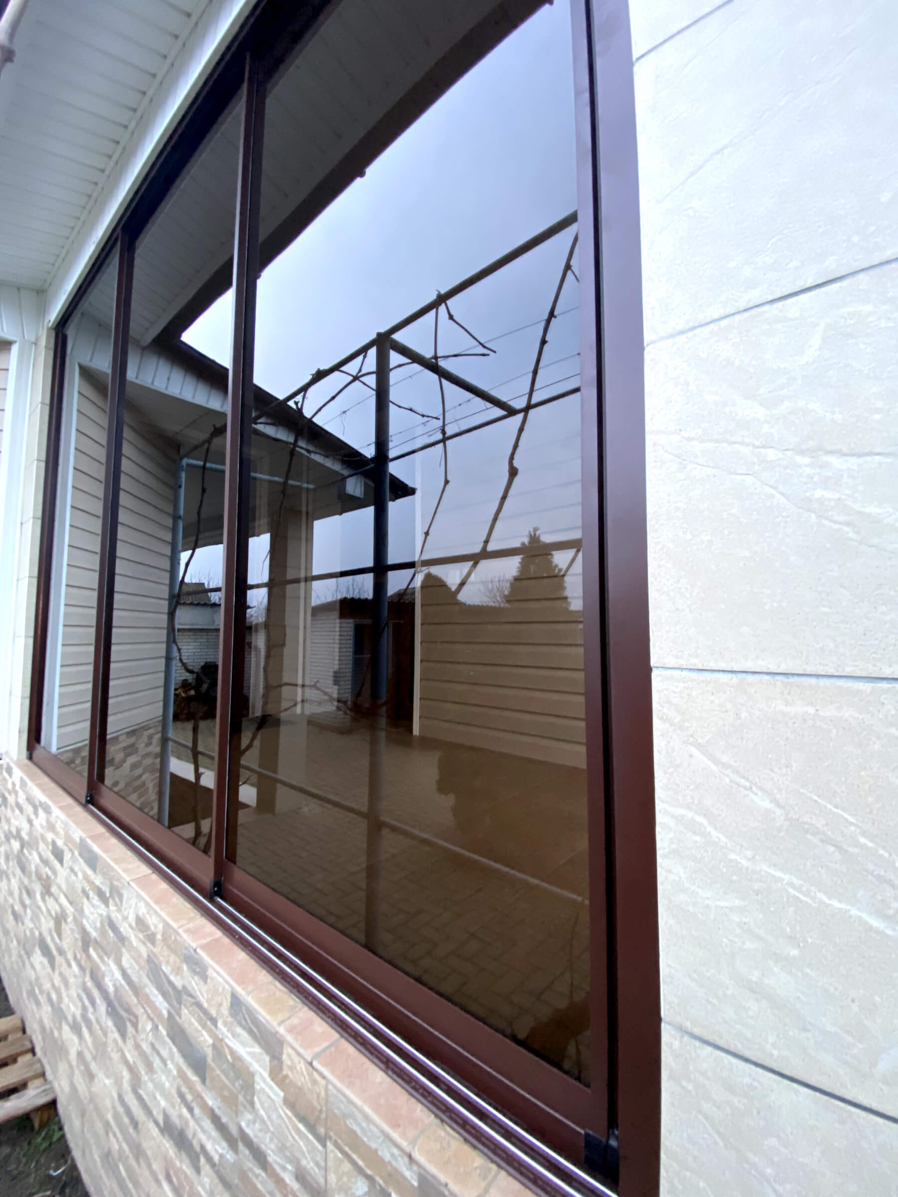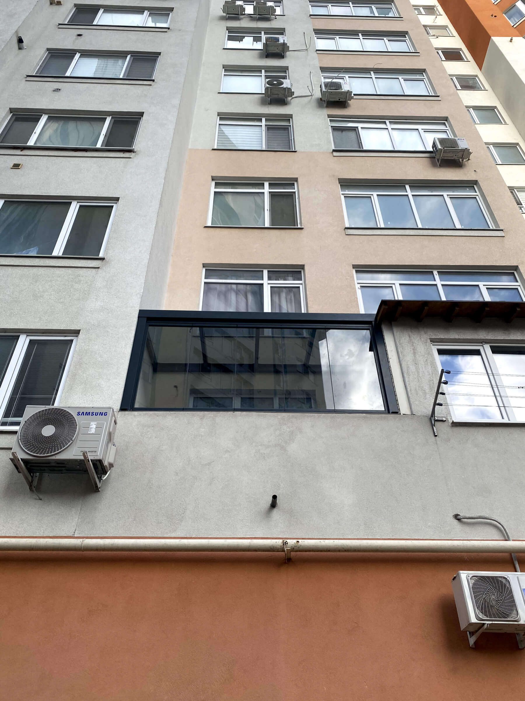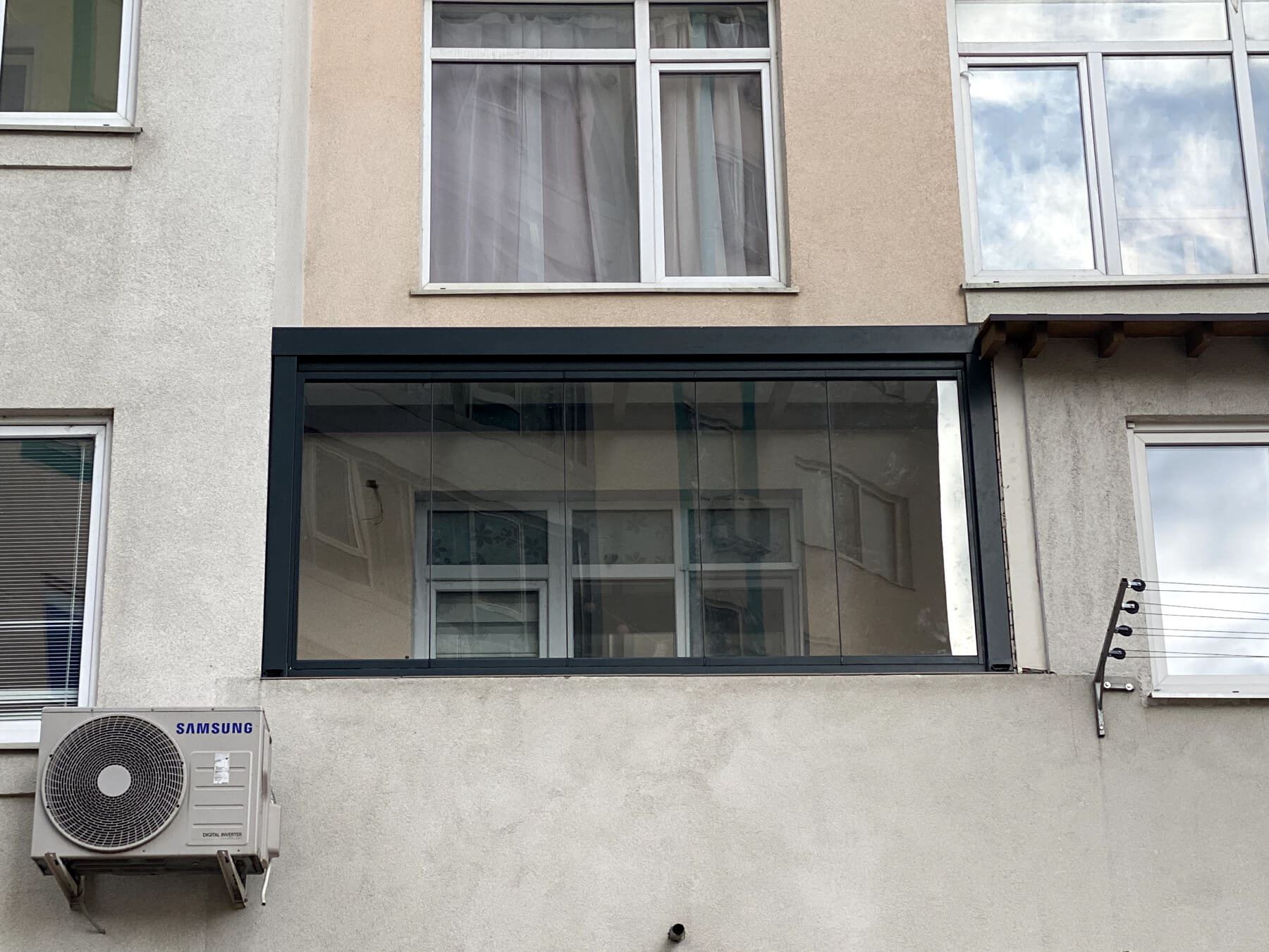 Sistemul este format din profile din aluminiu și foi de sticlă securizată (cu grosimi de 8 si 10 mm), care sunt mobile și nu necesită rame intermediare, conferind un aspect elegant și confort sporit.