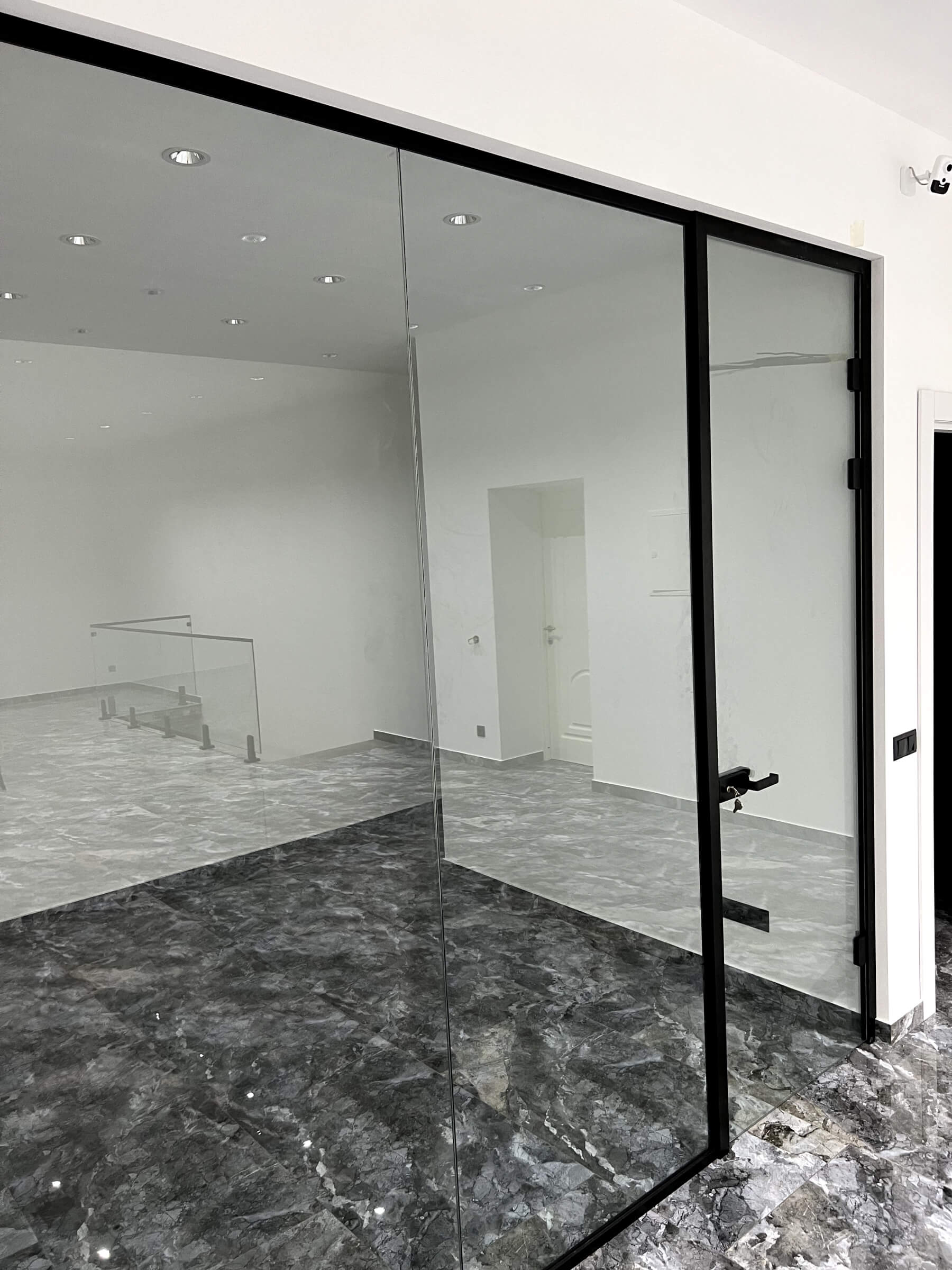 Glass Systems oferă servicii de realizare la comandă a ușilor cu toc din sticlă securizată, cu sau fără profil perimetral.